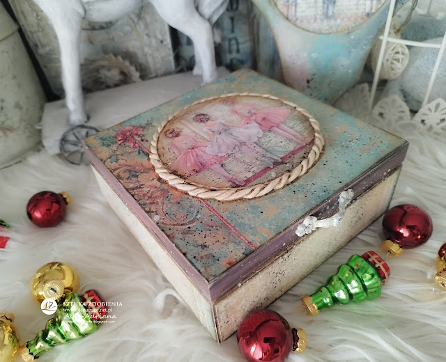 Witam Was w nowym roku z nową inspiracją. Pudełko jest prezentem dla mojej przyjaciółki. Wykorzystałam kolekcję Stamperia Dewdrops- Fotografia. Bardzo ładne kolory i obrazki. Transferem Rub-on z kolekcji wypełniłam okrągły obrazek, tak aby zapełnić puste miejsce. Uwielbiam te transfery a kolekcja jest przepiękna. Koleżanka zachwycona, a to najważniejsze.